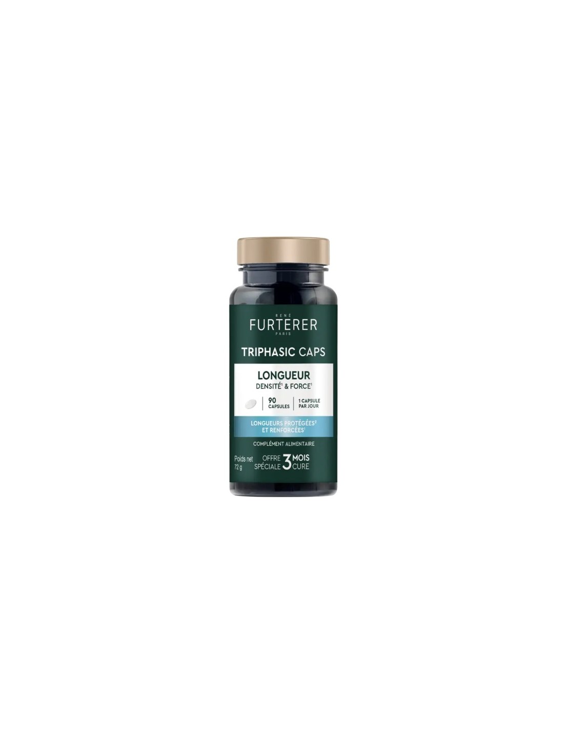 TRIPHASIC CAPS Largos, suplemento alimenticio para el cabello, especialmente diseñado para el cabello largo. Su fórmula rica en vitaminas aporta densidad* y restaura la belleza del cabello largo*. El cabello se fortalece* y protege gracias a la vitamina E, que ayuda a proteger las células del estrés oxidativo. Cápsula sin colorantes artificiales.