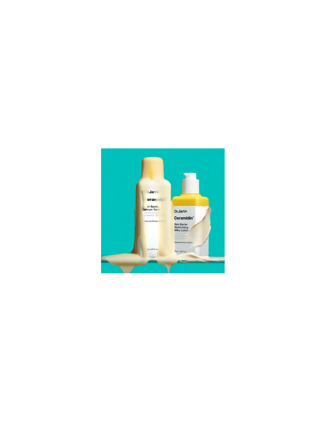 La Ceramidin Skin Barrier Moisturizing Milky Lotion de Dr. Jart+ tiene una textura ligera como una pluma, pero ofrece un cuidado hidratante óptimo. Las ceramidas nutritivas, el pantenol y la glicerina refuerzan la barrera cutánea. La textura lechosa se funde al contacto con la piel, dejando una base suave y un acabado de rocío.