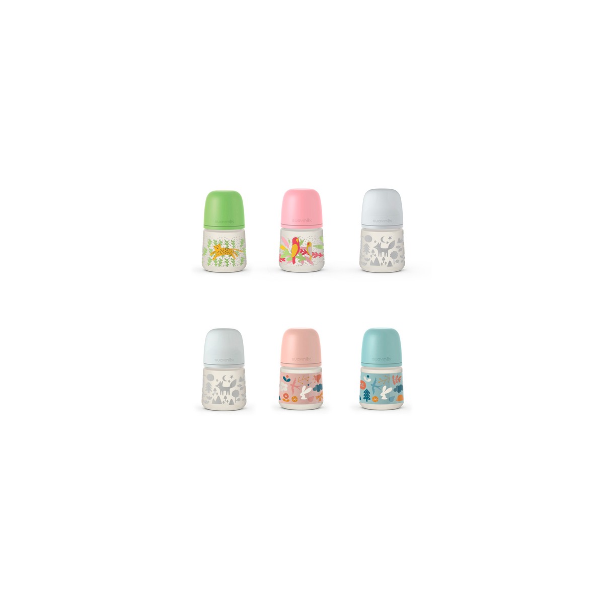 Biberon Prints 150ml, nueva botella, forma recta que ofrece un agarre más cómodo para el bebé. Con tetina Fisiológica SX Pro™ flujo lento, desde el nacimiento, deja pasar poca cantidad de líquido y es indicada para las tomas de leche de los primeros días de vida o para el agua más adelante*.
