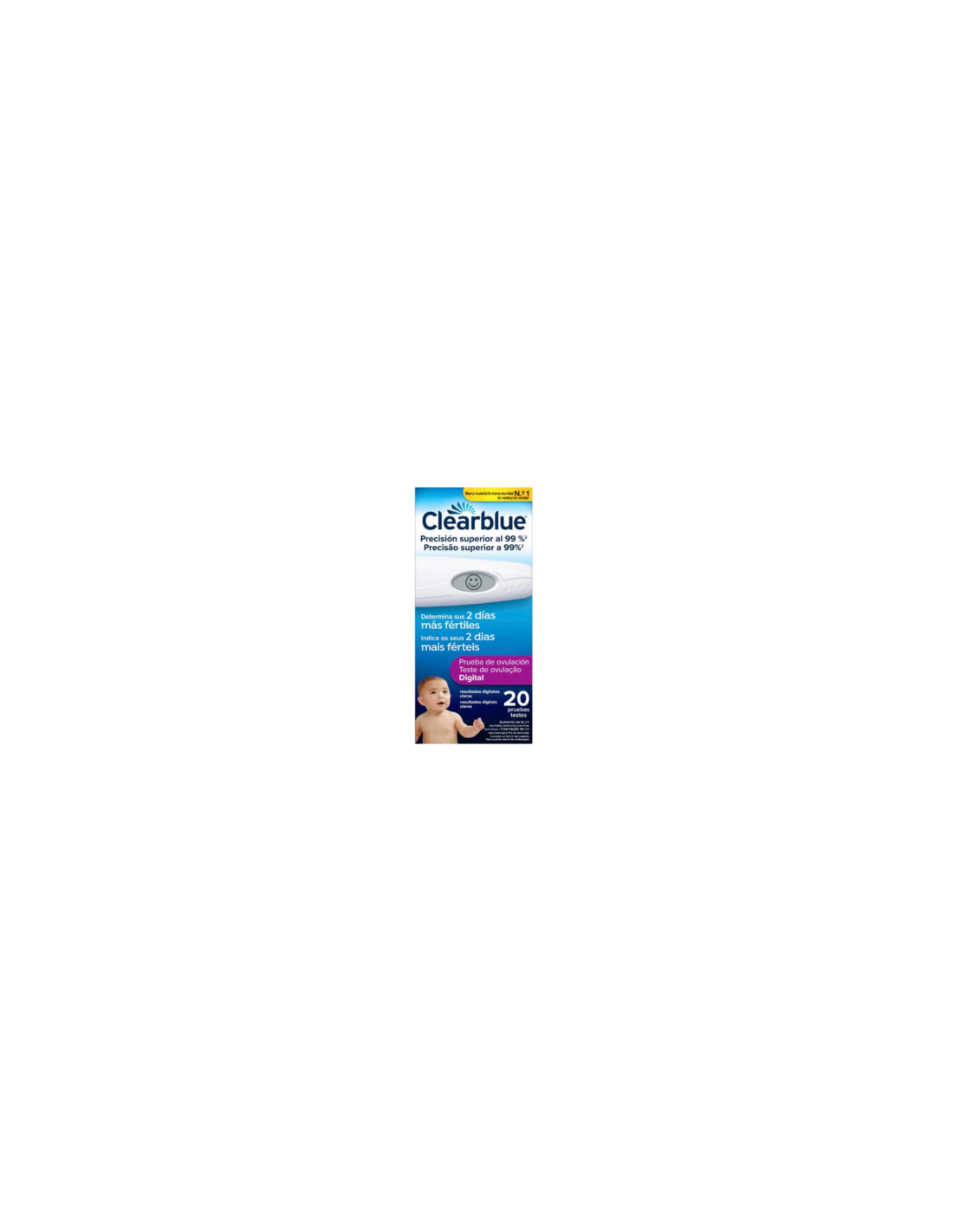 Prueba de ovulación digital que ayuda a maximizar las probabilidades de quedarse embarazada de forma natural al determinar los 2 días más fértiles de cada ciclo a través de la medición de los cambios en los niveles de una hormona de la fertilidad clave: la hormona luteinizante (LH). Es más preciso que los métodos basados en la temperatura y el calendario e indica resultados totalmente claros en una pantalla digital.