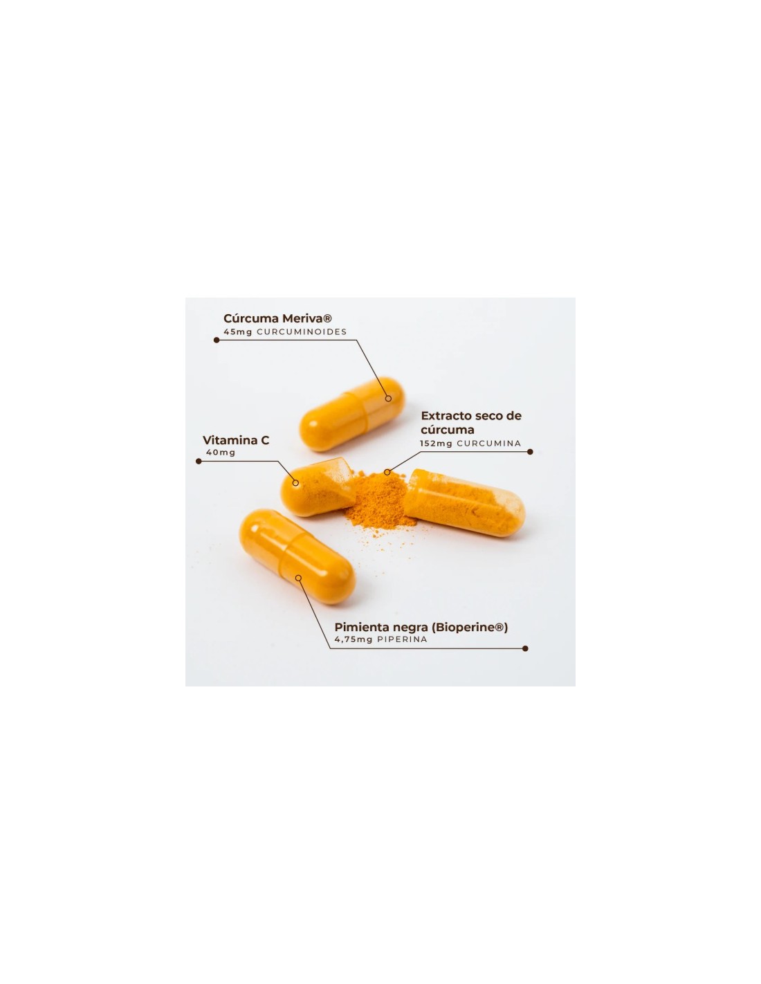 Los beneficios de la cúrcuma y la pimienta negra son muy amplios. Nuestra fórmula innovadora contribuye a la protección de las células frente al daño oxidativo y a favorecer una digestión saludable. Además, apoya el sistema innmunológico y la función del sistema nervioso.