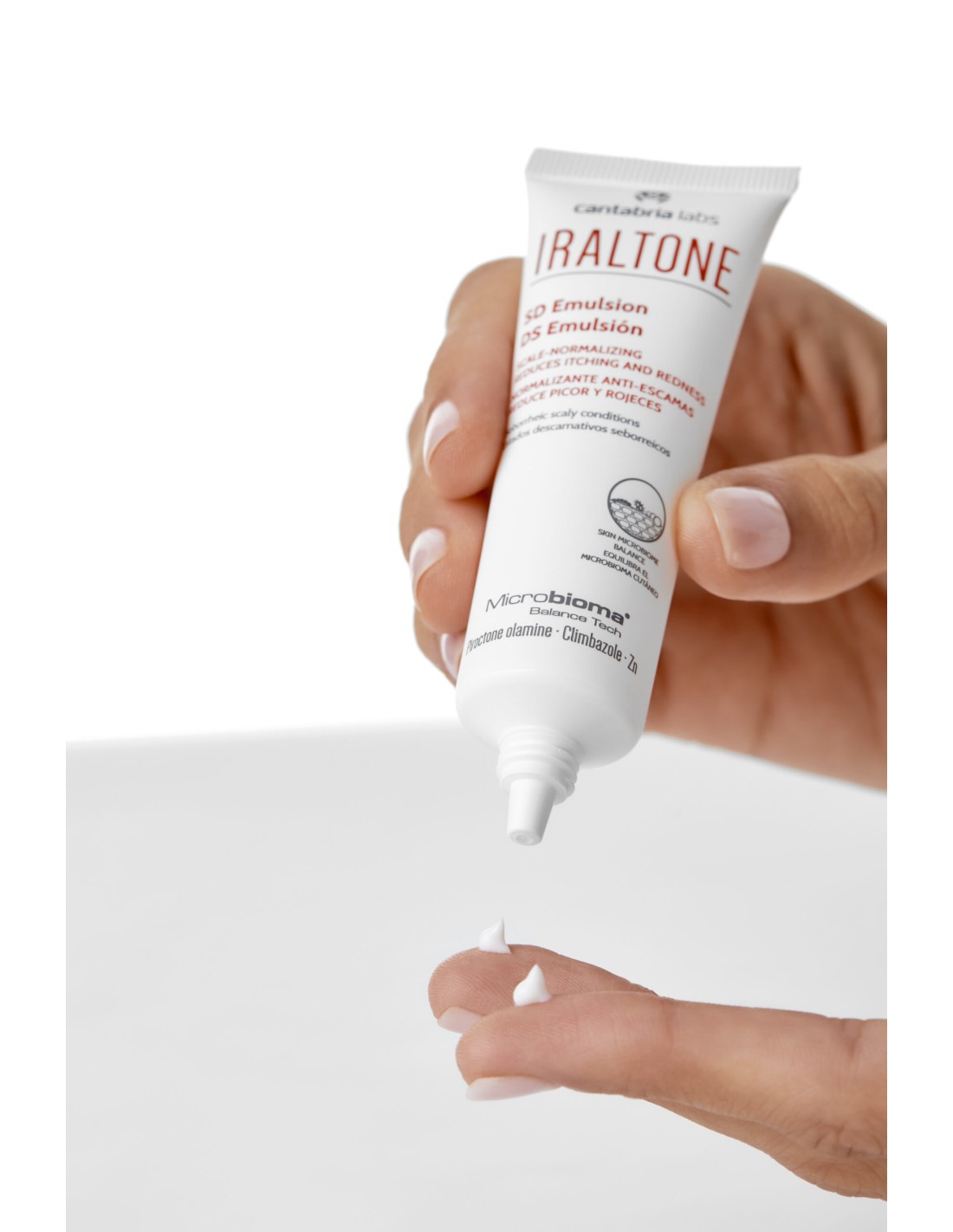 Emulsión ligera de rápida absorción con acción múltiple para el tratamiento de los estados descamativos seborreicos. Su exclusiva tecnología Microbioma Balance Tech® reequilibra el microbioma cutáneo y aporta un extra de confort e hidratación a la piel gracias a su 5% de ácido hialurónico. Además, combina activos que reducen la descamación, el eritema y el picor facial.