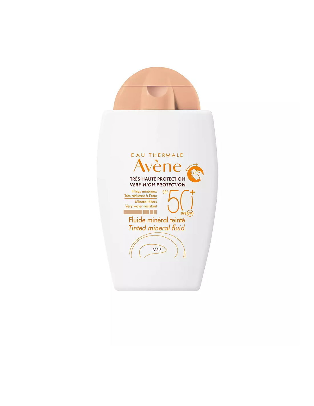Protector solar sin filtros físicos, sin perfume y sin parabenos. Avene fluido Mineral con color protección solar muy alta SPF50+ presenta una textura muy fluida, de rápida absorción, acabado mate y que unifica el tono gracias a su ligero color. ntes de cualquier exposición al sol, aplicar el Fluido Mineral Coloreado SPF 50+ sobre el rostro de manera uniforme.