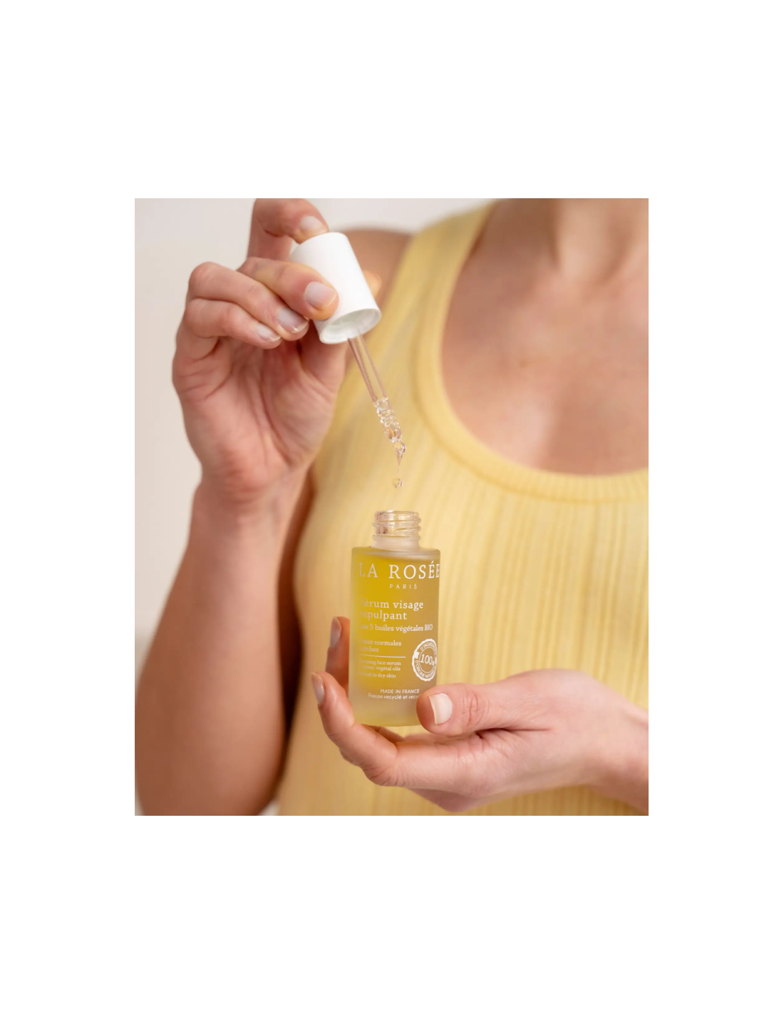 Sérum reafirmante con 5 aceites vegetales orgánicos nutre intensamente la epidermis para una piel más tersa.